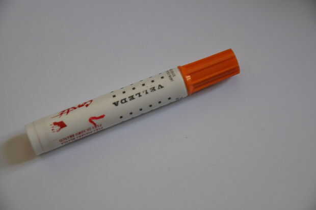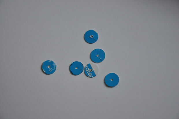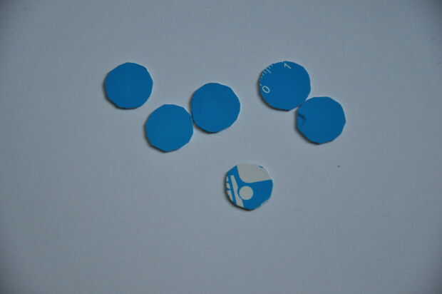 Estos círculos son a su vez colocado en la pieza más grande del marcador y pegan (con una modesta cantidad de pegamento porque quitaron el varias veces, (por lo menos en mi caso, leer el siguiente paso)).