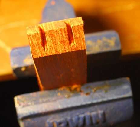 Dicho esto, usé dos trozos de chatarra para cortar dos muescas de 1/8". Esta fue la plantilla. Y laterales de la caja fueron etiquetadas en los extremos (A/A, B/B, C/C y D/D) por lo que sería mantenerlos en orden y cada conjunto fue puesto entre las piezas de la plantilla y cortar y lijar si es necesario.