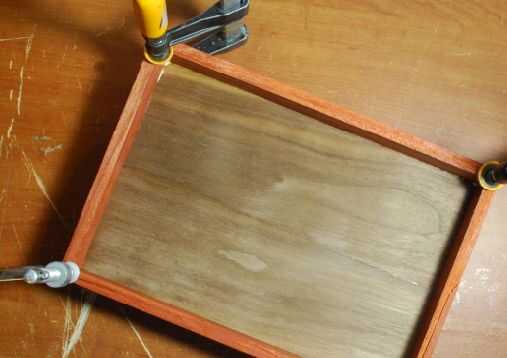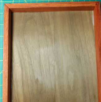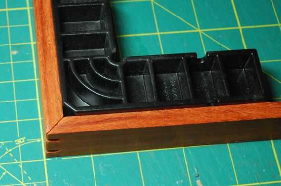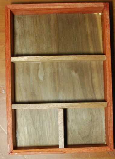 Los divisores se colocaron en las roturas del panel natural, medido contra los pedazos de la tapa, marcados los puntos y pegado en los divisores de caoba.