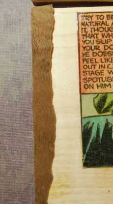 El ribete a lo largo de la izquierda pretende parecerse el borde desgarrado de la página. Esto era una adición de última hora que creo que funcionó bien. El cuadro parecía demasiado llano sin él.