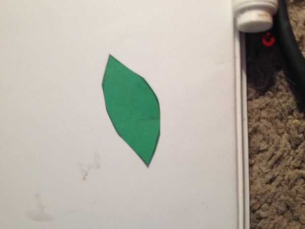 Dibujar la hoja como formas en el papel de construcción verde que son aproximadamente una pulgada de largo, después cuando recorto uso el marcador para dibujar el diseño de una hoja como se muestra arriba en la segunda foto