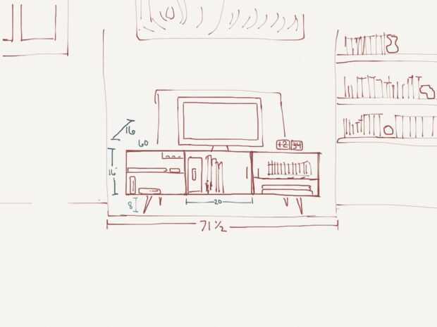 Al poner en marcha este proyecto llevó mucho tiempo a decidir exactamente lo que quería. Tomé la inspiración de unos muebles de West Elm y comenzó a pensar sobre lo que exactamente se se almacenar en la consola. Que elaboró un diseño en mi iPad y realizó algunas mediciones ásperas.