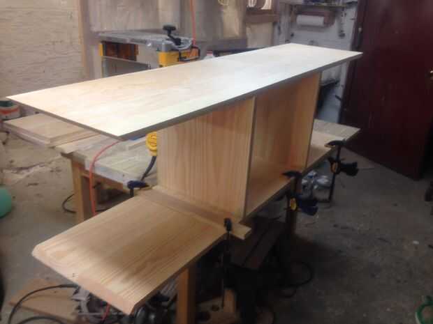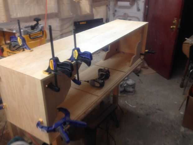 Después de que los paneles fueron preparados y arena, ingleteando los bordes de las placas superior e inferior de 45 grados. Yo también ingleteando los dos paneles laterales en ángulos de 45 grados.