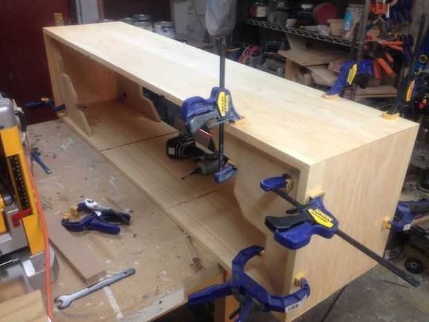 Antes de pegar todos los lados enruta 3/4 en arboledas en la parte superior y paneles inferiores 18 1/2 pulgadas de los lados donde el interior paneles de voluntad ir. Asegúrese de que sus medidas son constantes en los paneles superior e inferior para que las juntas son perfectamente rectas.