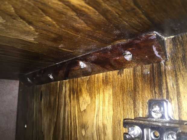 Para ayuda adicional me corte 12 x 1/2 x 1/2 en tiras de madera dura y cortar a ángulos de 45 grados. Jodido estas en el interior las esquinas de cada articulación para un apoyo extra mientras el pegamento secado.