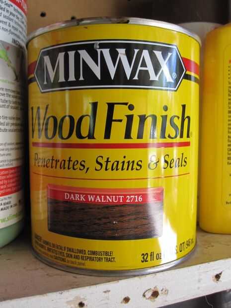 Una vez que tengas la consola enarenada y feliz con las superficies, es hora de la mancha. Usé un tinte nogal Minwax. Con un pincel de espuma poner una capa en todas las superficies y luego limpiar. Después de secar fui todas las superficies con una segunda capa.