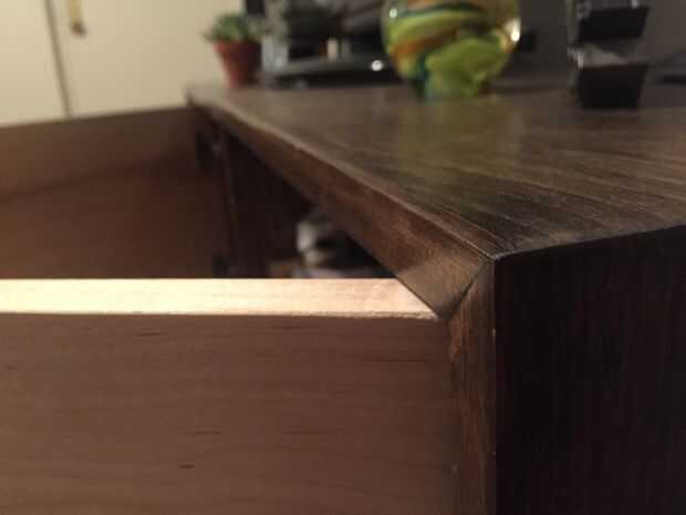 En mi caso, había algunas lagunas en algunos de los rincones y las ranuras que encajan el interior paneles. No me gustó cómo el frente parecía así que mide la parte delantera y había añadido un ajuste cortando finas tiras de tablero y pegado luego al frente para un acabado más limpio.