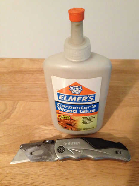 4. madera pegamento y un cúter, pegamento para madera trabajado mejor para mí. En realidad empecé con adhesivo de montaje en spray que no trabajó con la base de la espuma muy bien en todos.