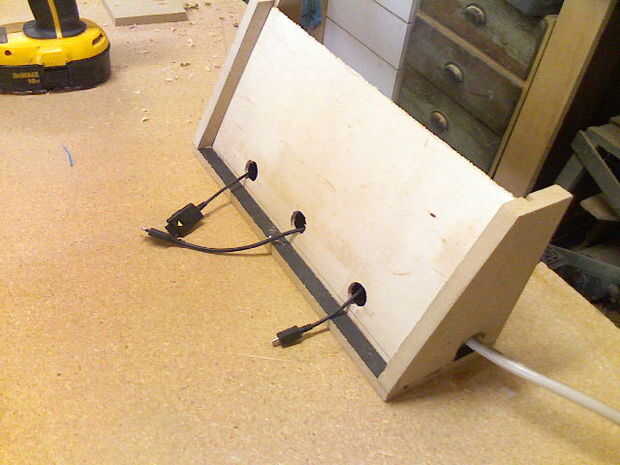 I know!..... Hay muchas estaciones para elegir de acoplamiento. Necesitaba uno para mi familia usar, así que pensé que me gustaría probar mi propia versión. Se trata de un prototipo, se utilizo madera de algún tipo (cereza, caoba o roble) para el último intento. Es mi primer Instructable para ir fácil en mí. Creo que hay suficiente información para que alguien la idea, si no me avisas y yo te responderé lo mejor que puedo. Asegúrese de taladrar los agujeros lo suficientemente grandes como para quitar plugstrip y permiten conectores de diverso tamaño. Son los agujeros ha perforado en la parte superior 13/16