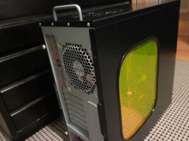 Un caso de PC que está dispuestos a cortar y perforar: utilicé una Antec 300 aunque cualquier caso funciona bien