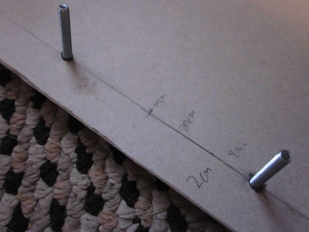 Una vez que se corta el cartón, mida la distancia desde la parte trasera donde quieras el mango al ser. (Yo escogí 2 cm) Luego use una regla (borde recto) y trazar una línea desde ese punto verticalmente a la parte superior e inferior endges de la plantilla. Esto le dará una línea recta para colocar las marcas de agujero. Ahora mida el ancho de la caja en la plantilla y marcar la plantilla adecuada. Ahora encontrar la mitad de la anchura del caso y marque en la línea trazada para los tiradores. Ahora Mida la longitud de su mango desde el centro de los orificios. Divida ese número por dos y luego tomar ese número y medir a partir de la marca media en la línea. Hacer un punto con un marcador de pluma. Esto debe la manija del centro y espacio correctamente para los tornillos. Coloque la manija al lado de los puntos y asegúrese de que se alinean. Ahora toma un alfiler y hacer un agujero a través de los puntos. Ahora toma un destornillador philips pequeño y hacer el agujero más grande. Sigue aumentando el tamaño del conjunto hasta que ajuste a los tornillos de la manija. Ahora inserte los tornillos y fijar el mango para asegurarse de que encaja correctamente. Su plantilla está completa!