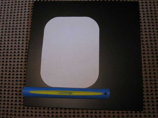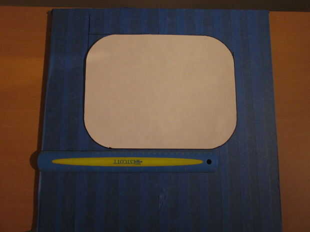 Coloque la plantilla en el panel y medir las distancias de la parte posterior, superior e inferior del panel. Esto le ayudará a organizar más adelante. Ahora cubre el panel de la cinta de pintor, esto evitará cualquier chip de la pintura y el panel para conseguir rasguñado durante el corte por la ventana. La cinta de pintores también nos da una superficie para trazar nuestra plantilla en el panel con el marcador de elección.