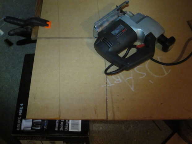 Ahora que tienes el tamaño medido correctamente, utilice un borde recto y hacia fuera de la ventana de acrílico en la hoja grande. Después de esa, abrazadera hecha del acrílico como de la superficie tanto como sea posible a la obra y tomar su rompecabezas (con la cuchilla más fina puede encontrar (obras de cuchilla para corte de metales)) y comenzar los dos) o más) los cortes necesarios. No tarde mucho, pero ser cuidadoso de no hacer añicos el acrílico durante el corte.