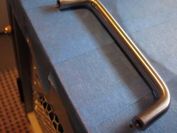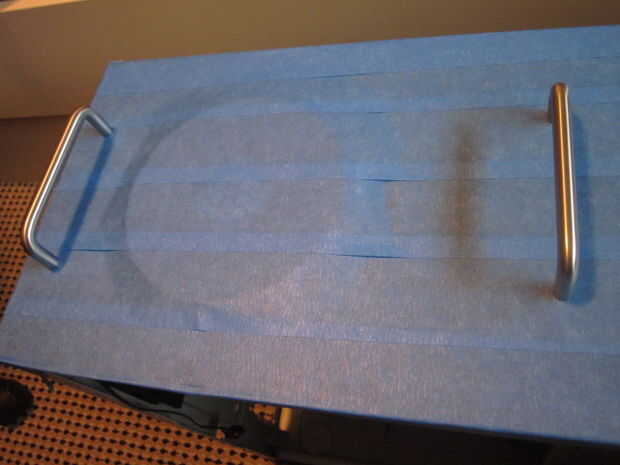 Si los puntos atrás se alinean con el mango, todo lo que tienes que hacer es diapositiva de la plantilla hasta el frente, manteniéndolo alineada con el caso. Mayoría de los casos tienen un bisel plástico en la parte delantera, así que asegúrese de mantener la plantilla en el metal. Marcar los puntos otra vez y prueba de la handel. Ahora debe tener las marcas apropiadas y prepararse para perforar los orificios!