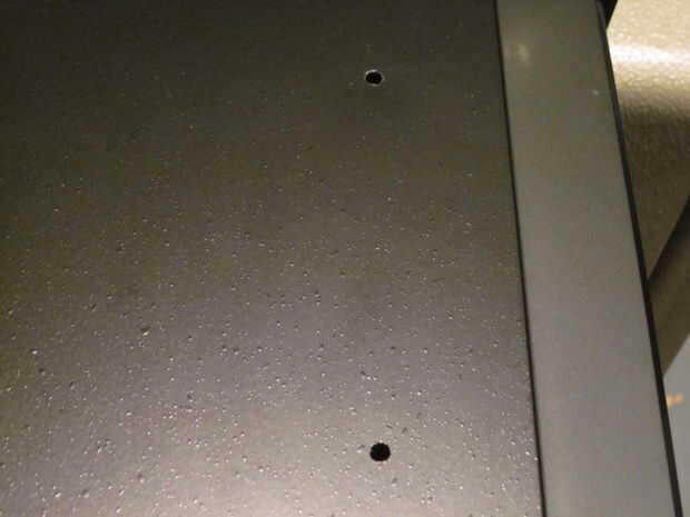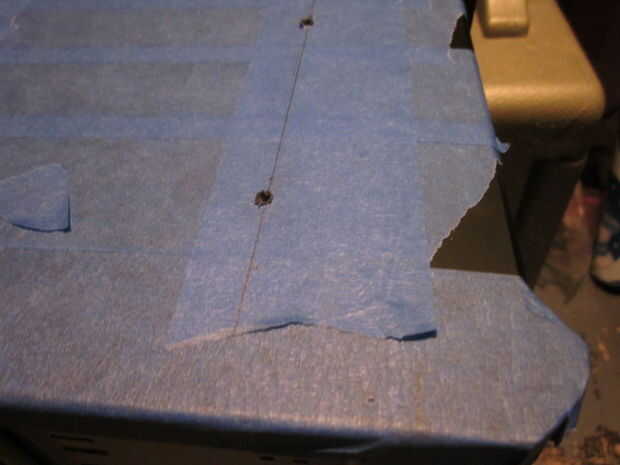 Comience con un agujero piloto. (un pequeño agujero taladrado primero antes de la) Después de perfora el agujero piloto, encontrar algo que es del mismo tamaño que el tornillo (mismo diámetro). Ahora uso el taladro y agrandar el agujero para el tornillo. Después de hecho esto, retire la cartulina debajo de la parte superior caso y trata de encajar el tornillo a través de él. ¿Concuerda? ¿Sí? Genial, ahora Prepárate sujetar los handels. ¿No? OK uso un poco un poco más grande que el diámetro del tornillo y vuelva a intentarlo. ** Evitar la perforación a través de los cables que estén aún en el caso **