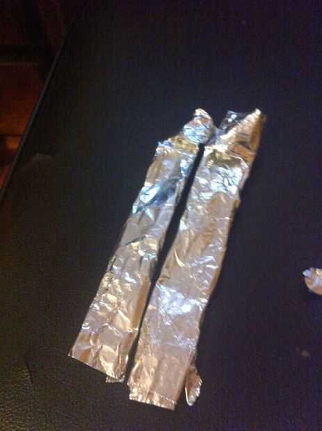 Tomar un pedazo de papel aluminio tamaño no importa. Veces poco a poco hasta que haya una línea doblez 1/4 del camino y dobla en forma de bola hacer otra pieza. Felicitaciones Usted acaba de hacer el oído cosita ahora para el siguiente paso.