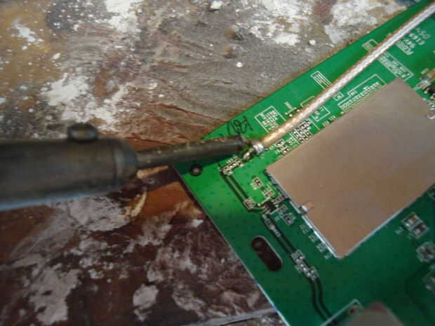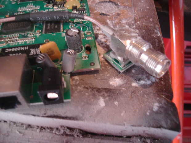 Para mi antena, me decidí a usar lo que tenía. que era un viejo router de wifi WRT54G. con unos dremeling de mancha y de soldadura tenía la antena!