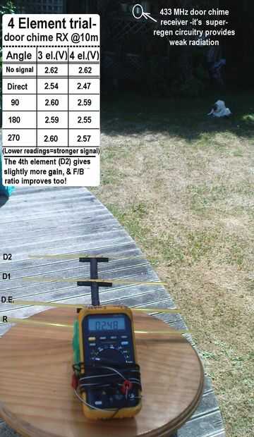 Los beneficios de la adición de un elemento 4 (Director #2 - espaciados y cortar el mismo Director #1) se exploraron algunas semanas más adelante y fueron encontrados para ser marginal que vale la pena! Sin embargo la antena general entonces se convierte en algo incómodo larga.