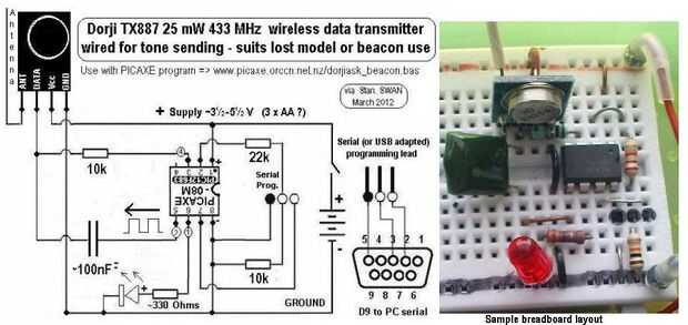 Un mejor enfoque utiliza un módulo correspondiente del transmisor Dorji preguntar, persuadido a enviar micro PICAXE. genera tonos. (Consulte = > http://www.picaxe.orcon.net.nz ) La belleza de la utilización de un microcontrolador es que puede organizarse un esquema de transmisión característico, tal vez codificado Morse. No sólo esto agrega a la acción de seguimiento, pero permite que varios transmisores escalonados ser secuenciado. Horas tranquilas pueden ser preprogramados, para el suspense de "caza", ahorro y también monitor de la batería del transmisor cualquier interferencia local.