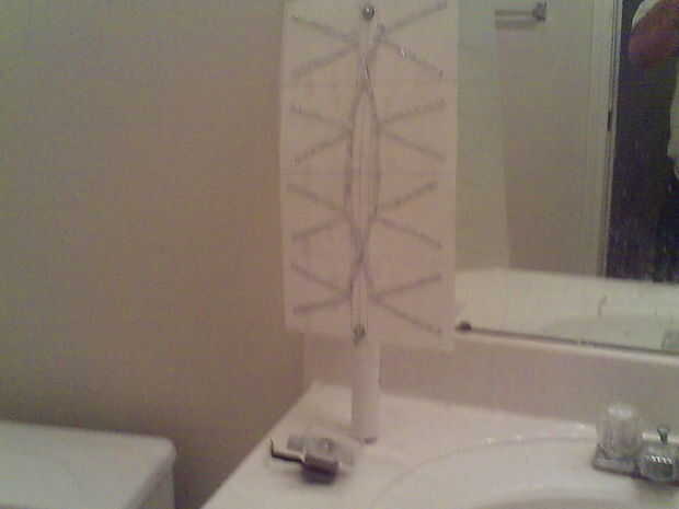 Tome el extremo sin cortar el tubo y pegar a la Plaza. (Nótese la antena tiene que ser recta hacia arriba y hacia abajo con no inclinada).