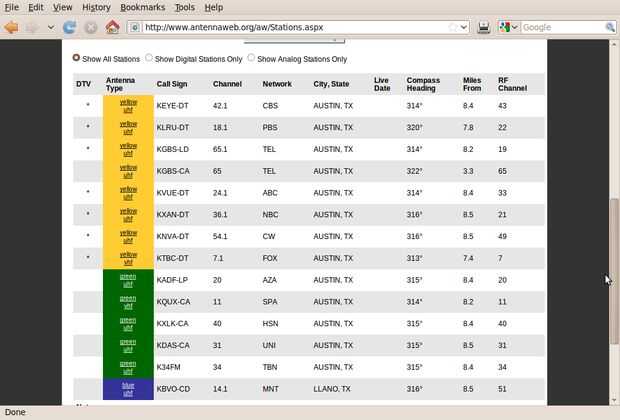 Ir a http://www.antennaweb.org/ para averiguar qué estaciones están disponibles y qué dirección la antena debe ser acentuada. Ahora puede utilizar la brújula para ver de que manera es norte o 0 grados.
