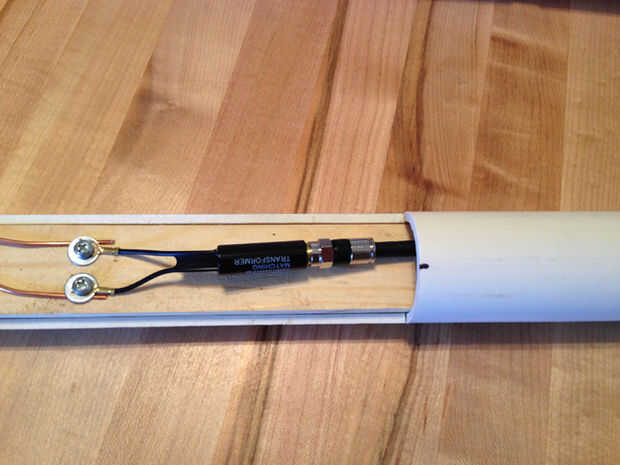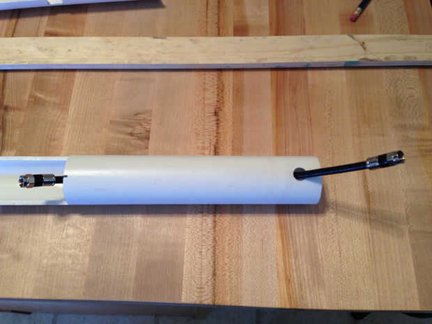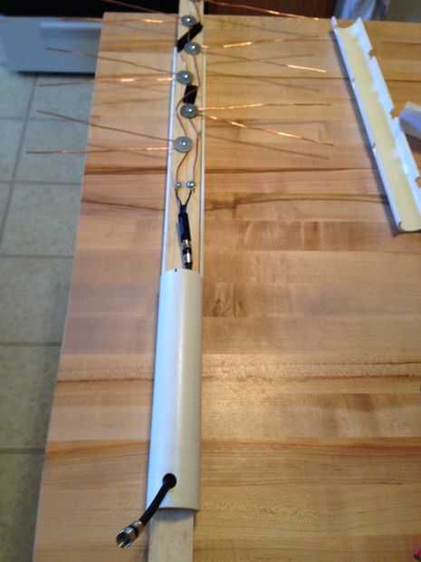 Simple TV antenna kit. Vi esta antena (lknown como la Walltenna) para unos treinta y cinco dólares. No pudimos ver pagar por un diseño simple, así que hicimos una nosotros mismos. Nos sorprendió lo bien trabajado incluso para el modelo crudo que hi
