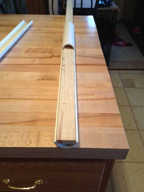 Corte 1/2" el borde de un tablero 48" largo de 2 "X 4". Esto debería encajar en el PVC como se muestra en la foto.