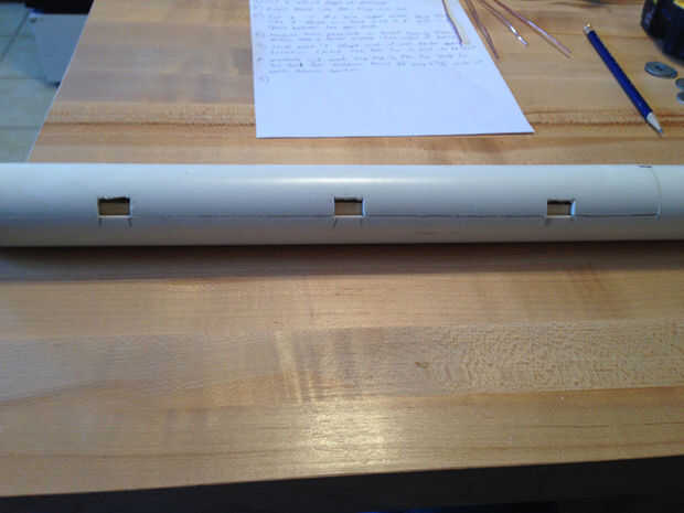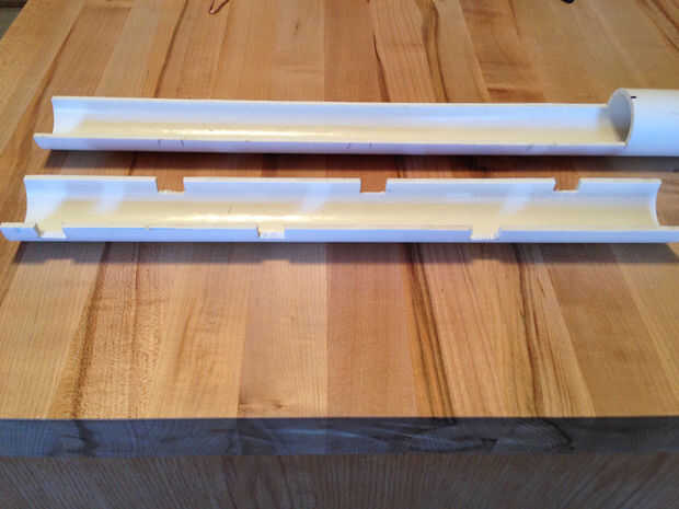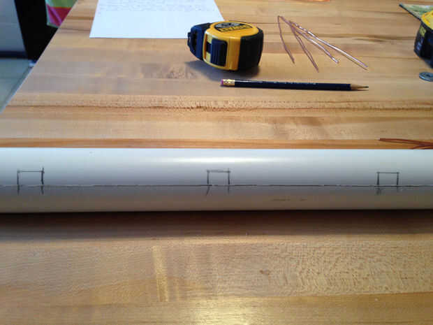 Marque y corte las ranuras en la parte superior la mitad del PVC en los lugares donde resaltarán los cables de antena.