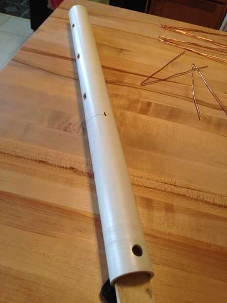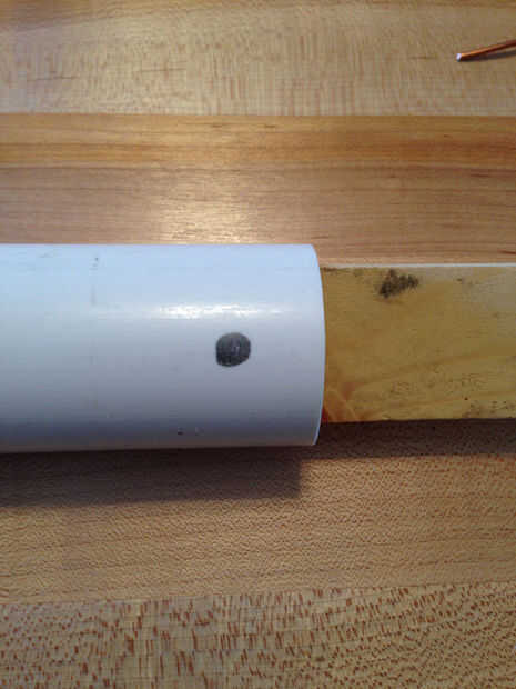 Marque y perfore un agujero de 1/2" cerca del borde inferior del PVC para el TV Cable conectar a la antena.