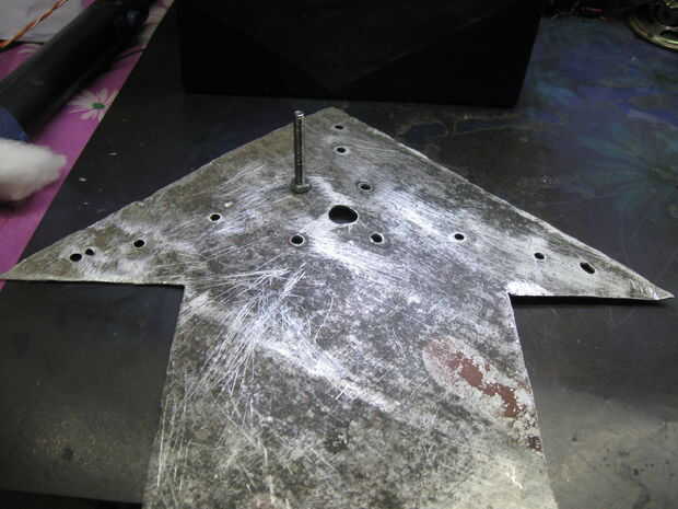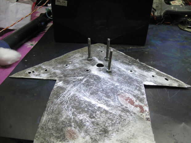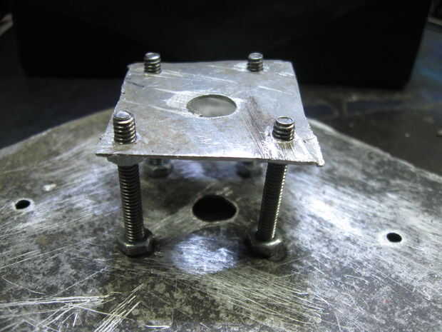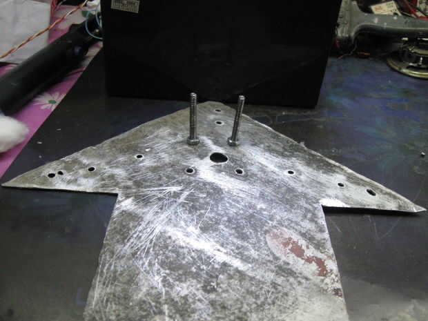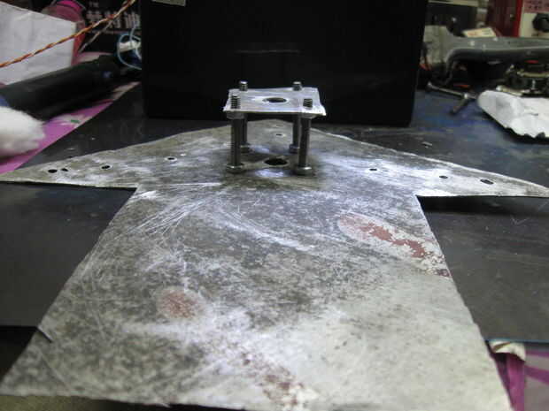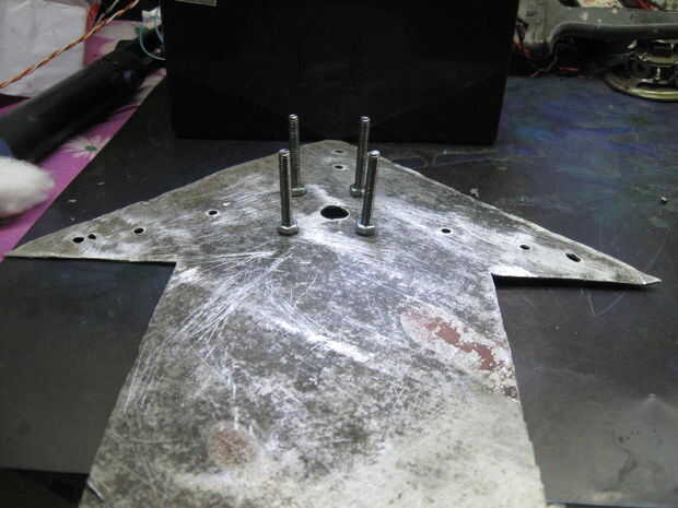 Ahora perfore cuatro agujeros más justo a los lados del orificio para los tornillos de ajuste como se muestra en la imagen de antena. Perforaciones más para los tubos de aluminio que se solucionará más adelante para el conjunto de palo. Agregar las cuatro tuercas y los pernos en los cuatro orificios que se hicieron uno por uno como se muestra en el diagrama.