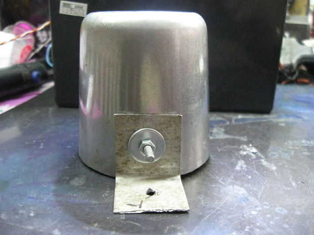 Ahora como la principal estructura de la base completa, es el momento para el vaso que fue cortado para ser instalado con la placa de forma de L que se cortó. Esto realmente funciona como un soporte de base principal para la barra vertical de aluminio así como un aislante de la prueba del agua para la toma de antena.