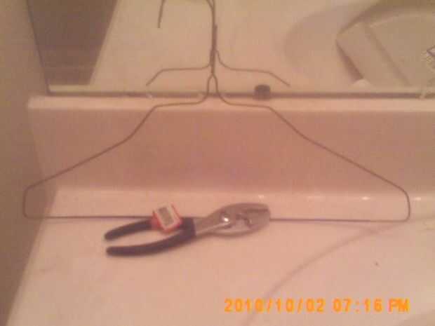 Tomar un colgador de ropa y corte una longitud de ocho pulgadas de la parte inferior de la suspensión. El resto de la percha es innecesario.