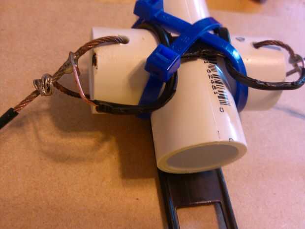Tenga en cuenta que esta antena se puede construir muy ligero con más pequeño alambre trenzado o TV doble plomo por lo que puede ser enrollada y poner en una mochila para ese viaje de senderismo con un pequeño transmisor CW para QRP << muy baja potencia.