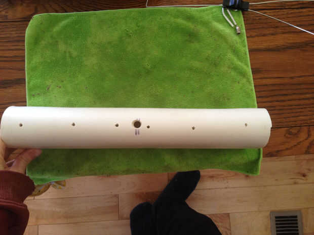 Una vez hecho esto, ir a través y los orificios apropiados e intentar averiguar algún tipo de montaje. He utilizado un trozo de cable cobre aislado de la casa.