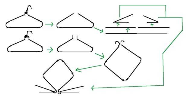 Par de ganchos y usted tiene una antena. Uso 7 y 6.5 pulgadas para el bigotes.
