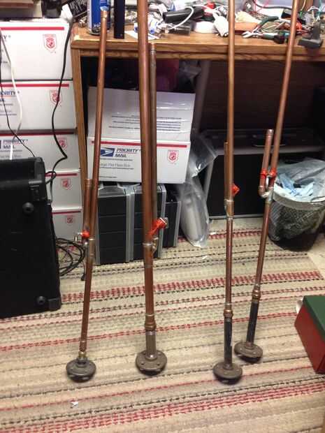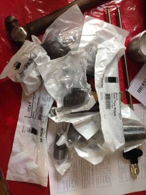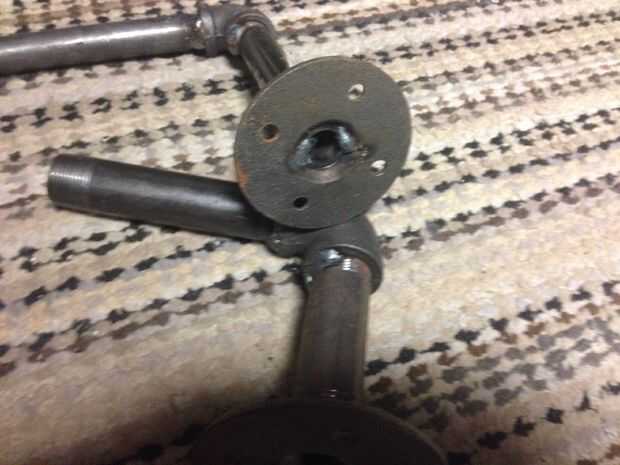 He añadido cobre sudor a acopladores roscados en la parte inferior por lo que podría utilizar algunos negro de tuberías y bridas para el montaje. Yo pude han utilizado galvanizado pero planeo amurado luego pintura les de la soldadura. Soldadura accesorios galvanizados no es lo mejor sobre todo en un espacio confinado.