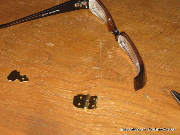 Esta bisagra fue elegida porque, como se puede ver con los marcos de mi esposa, el 5/8" ancho es un buen ajuste, aunque tuve que cortar la longitud hacia abajo un poco.
