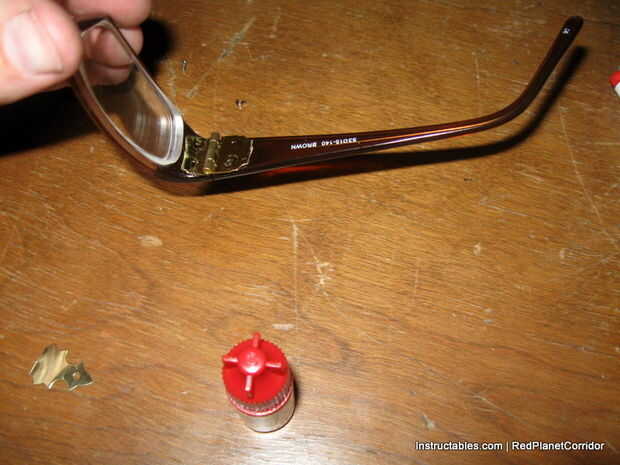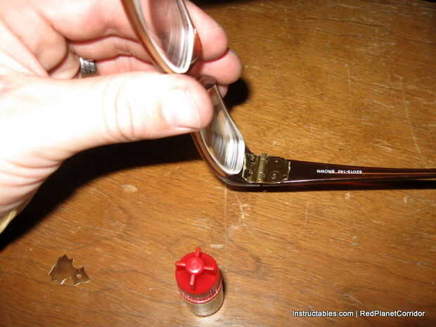 Pegué la bisagra hacia el lado de la lente del marco de la primera como sabía el auricular sería más fácil ajustar la alineación final de las dos partes. Me di cuenta de por alguna razón si alinearon el auricular nivel y simétrica con su contraparte mientras que los vidrios estaban abiertos, fue un poco "off" cuando cerró. Decidí dejarlo así porque el ajuste y la comodidad durante su uso era más importante que tenerlos línea cerrada.