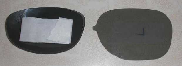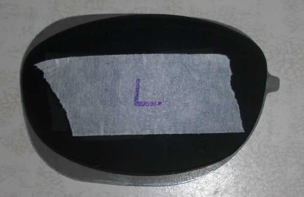 Si usted está usando tijeras, puede rastrear la lente así, pero no lo hice. Sólo utilicé el lente de las gafas de sol como patrón. Si vas esta ruta, asegúrese de que no a las tijeras para cortar bajo la lente de ángulo. Si lo hace, será demasiado pequeña! Así que en caso de duda, cortarlo demasiado grande.