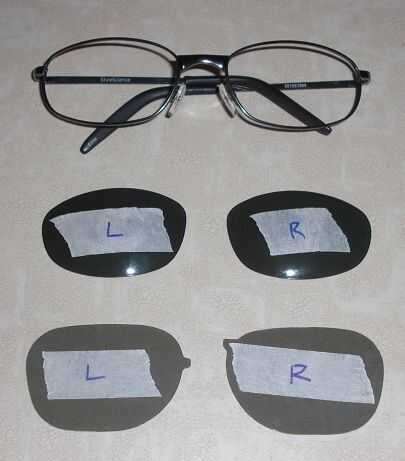 Si usas un cuchillo x-acto, debe probablemente trazar primero la lente, luego separarlas y empezar a cortar.