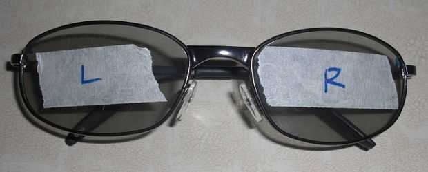 Una vez en el marco de ambas lentes, puede quitar las etiquetas. Puse una pequeña L y R en la parte superior externa, por lo que si las lentes se caigan más adelante, podré volverlos a montar rápidamente.