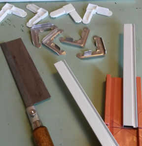 Cortar a la longitud del aluminio marco para caber en su base de caja. El tamaño de fotograma final debe ser el mismo tamaño o menor de las bandejas de madera. Utilice una sierra para metales o X-acto Sierra para cortar el aluminio. Una caja de ingletes le ayudará a sostener las piezas del marco y haz un corte recto.