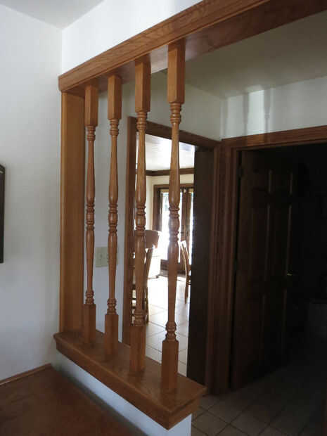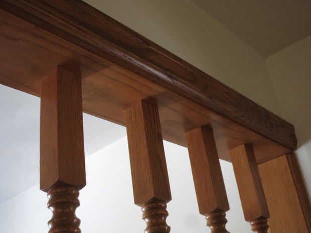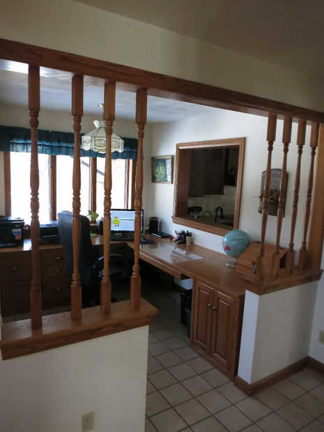 Después de convertir un comedor sin uso en una oficina en casa, hemos querido abrir aún más el espacio quitando los husos de madera 8 en la 2 mitad paredes principales en la habitación. Nuestra meta era quitar los ejes sin dañar las juntas de acabado roble y después llenar en cada uno de los 16 orificios cuadrados donde habían montados los husos con baldosas de cerámica decorativas. No quiere el gasto ni trabajo en sustitución de la carpintería, así que se nos ocurrió una solución creativa.