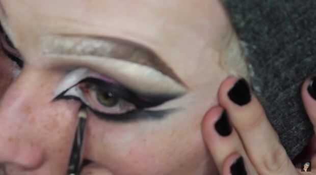 Crear un ala alargado sharp ayuda a feminizar el rostro generando fuertes líneas diagonales. Líneas diagonales ayudan a levantar la cara para crear una estética más femenina más delgada. Puede ayudar a delinear la forma general del delineador de ojos alado con un producto de gel y un cepillo y luego seguir con un delineador líquido para arrebatar la forma juntos. Utilizar el producto en su gel delineador de ojos cepillo para afilar aún más su corte doblez que usted dibujó en el paso 2.