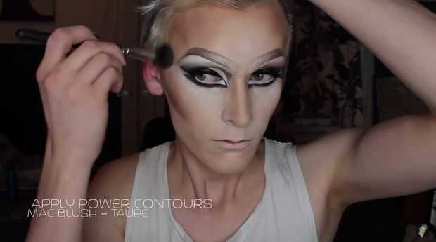 Pasar a profundizar en sus contornos con un polvo de contorno. Un contorno no debe confundirse nunca con un bronceador. La diferencia clave es que un polvo de contorno es mate y tonos cool mientras que un bronceador es de cálidos tonificada y puede o no contener reflejo. Encontrar un polvo de contorno que es de unos tonos más oscuros que tu piel y aplicarla con un pincel de su elección a las mismas áreas que aplique su crema contorno. Es mejor usar un pequeño pincel plano para aplicar contornos de polvo a la nariz. Si lo desea, puede tomar un polvo de contorno ligeramente más oscuro y aplicar esto al perímetro muy exterior de tus otros contornos para crear un contorno difuso, fuerte.