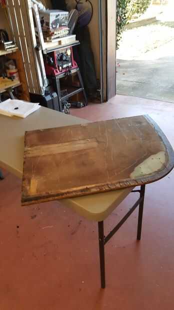 El primer paso en mi proceso fue localizar la madera. Comprobar craigslist, encontré una gran tabla que el dueño era descarte debido a las muchas reparaciones que se hicieron en los años y su necesidad de algo más pequeño. (Me dijo que la mesa era de aproximadamente 70 años de edad).