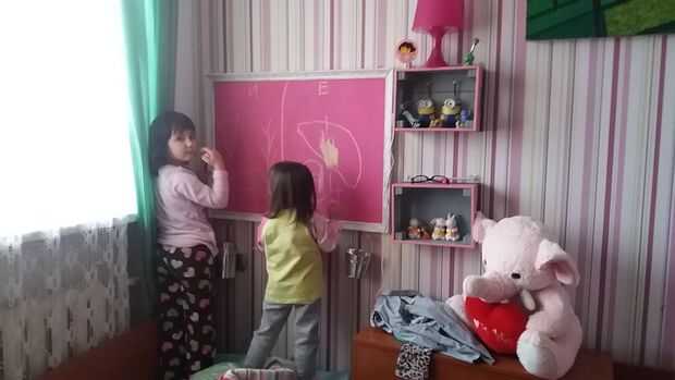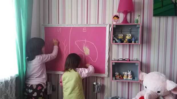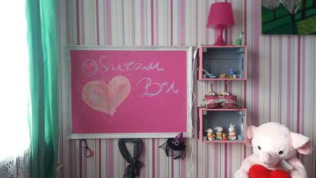 Había montado las paces en la pared y estoy esperando a las chicas para verlo por fin terminado. Dibujé un mensaje para que puedan probarlo y parece bastante bueno. Al principio estaba preocupada de que el rosa es demasiado oscura y la tiza woudnt verse bastante pero como veis los colores son maravillosos. Todo lo que queda es ir a comprar unas cajas de tiza ☺