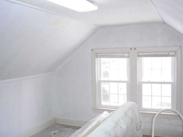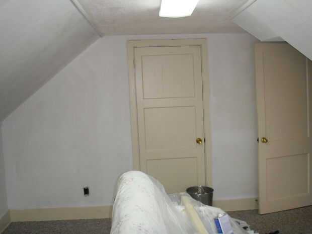 Ahora que cada cosa es lijar y limpiar necesitábamos añadir alguna imprimación. Hemos pintado todas las paredes recortar primero con un cepillo de cerca el trabajo de madera y techo de madera y el resto del balanceo. Entonces decidimos que si hemos pintado toda la pared del color que quería el hijo, sería el camino a la obscuridad. Hemos decidido que la habitación se vería mejor con la parte superior siendo su color azul y fondo blanco. Así que medido y marcado como el blanco debe ir y planeaba poner un pedazo delgado de recortar allí, para hacer un bonito aspecto acabado.