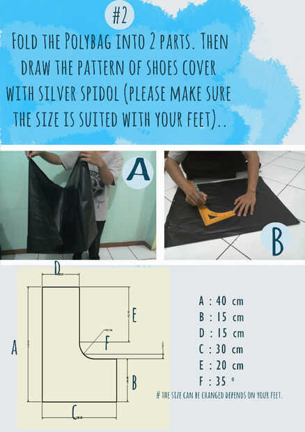 2. dibujar el patrón de la cubierta de los zapatos con spidol de plata (por favor asegúrese de que el tamaño es adecuado con los pies) al igual que el ejemplo de la imagen.