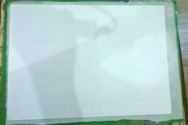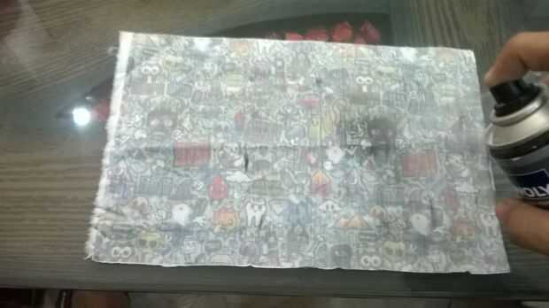 Primero se corta una pieza de nylon y usando el palillo del pegamento débil artesanía que el A4 de papel que empareja todos los lados y bordes de A4. Deje que se seque.